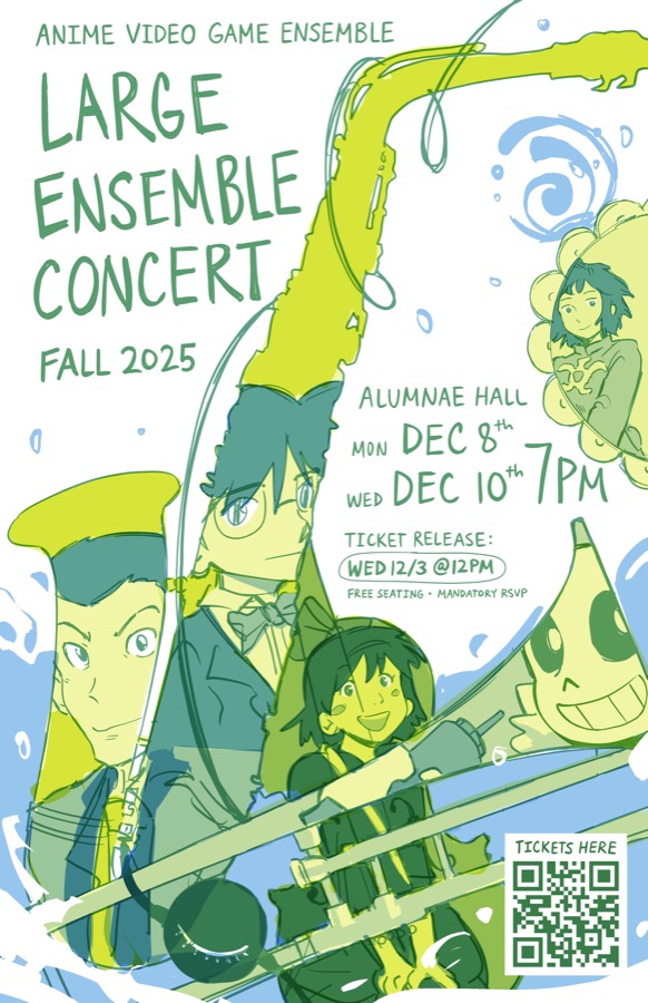 Brown X RISD’s Anime Video Game Ensemble (AVGE) is a student-led music group dedicated to performing and arranging songs from the often-overlooked worlds of anime and video games. Founded in 2022, AVGE has grown into a vibrant community of 80+ musicians who come together to rehearse, perform, and celebrate the music they love.